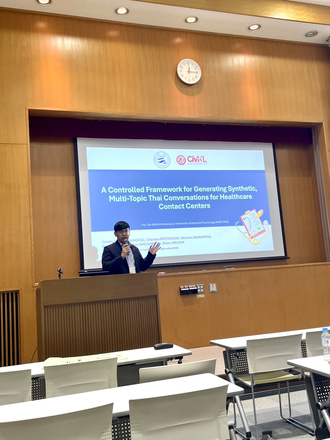 Presenter at the booth of CMKL University for MHESI AI LLM event with Siam.AI.